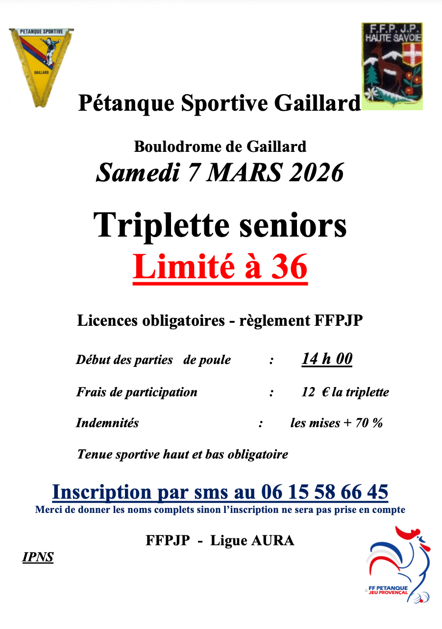 - - 04/04 : Championnat triplette provençal